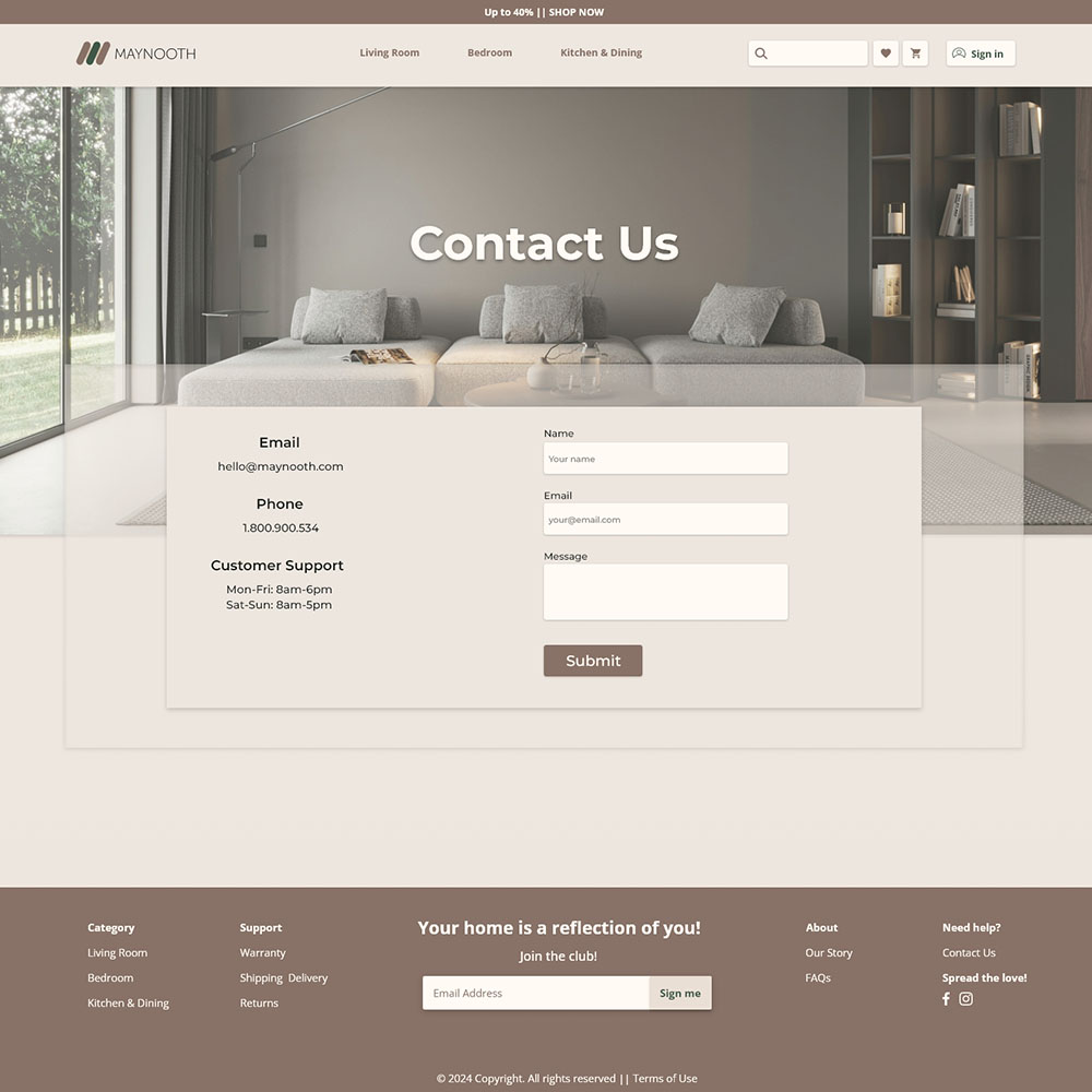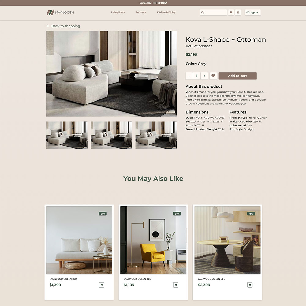 For this project, I developed a sleek and user-friendly website for Maynooth, an online furniture store. The design focuses on providing a seamless shopping experience, combining aesthetics with functionality. A minimalist design with a neutral color palette, ensuring that the products take center stage.